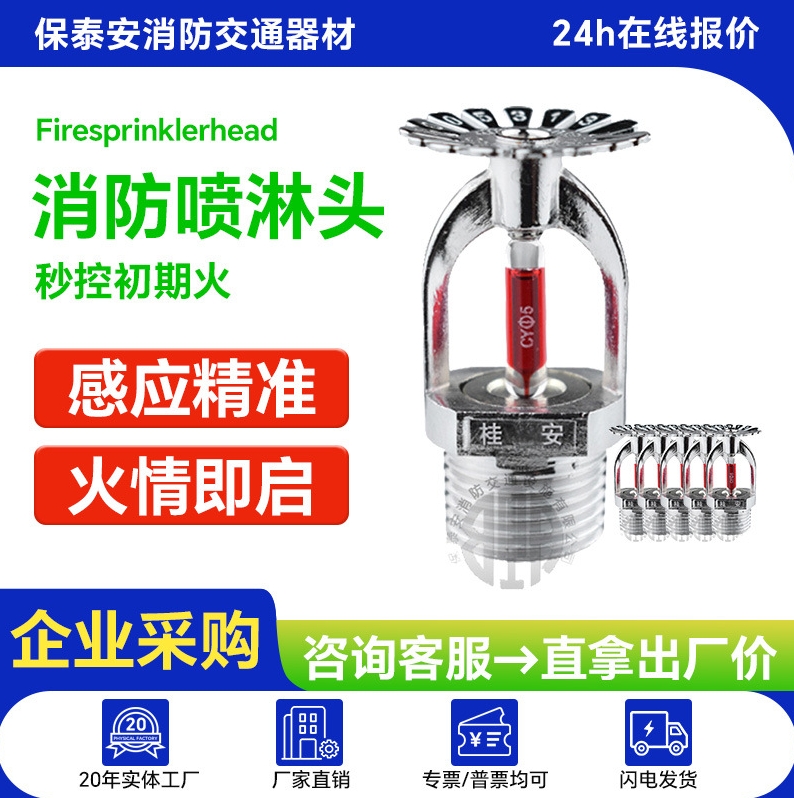 桂安消防喷淋头4分6分15/68度93度141度隐蔽喷头暗装上喷下喷侧喷
