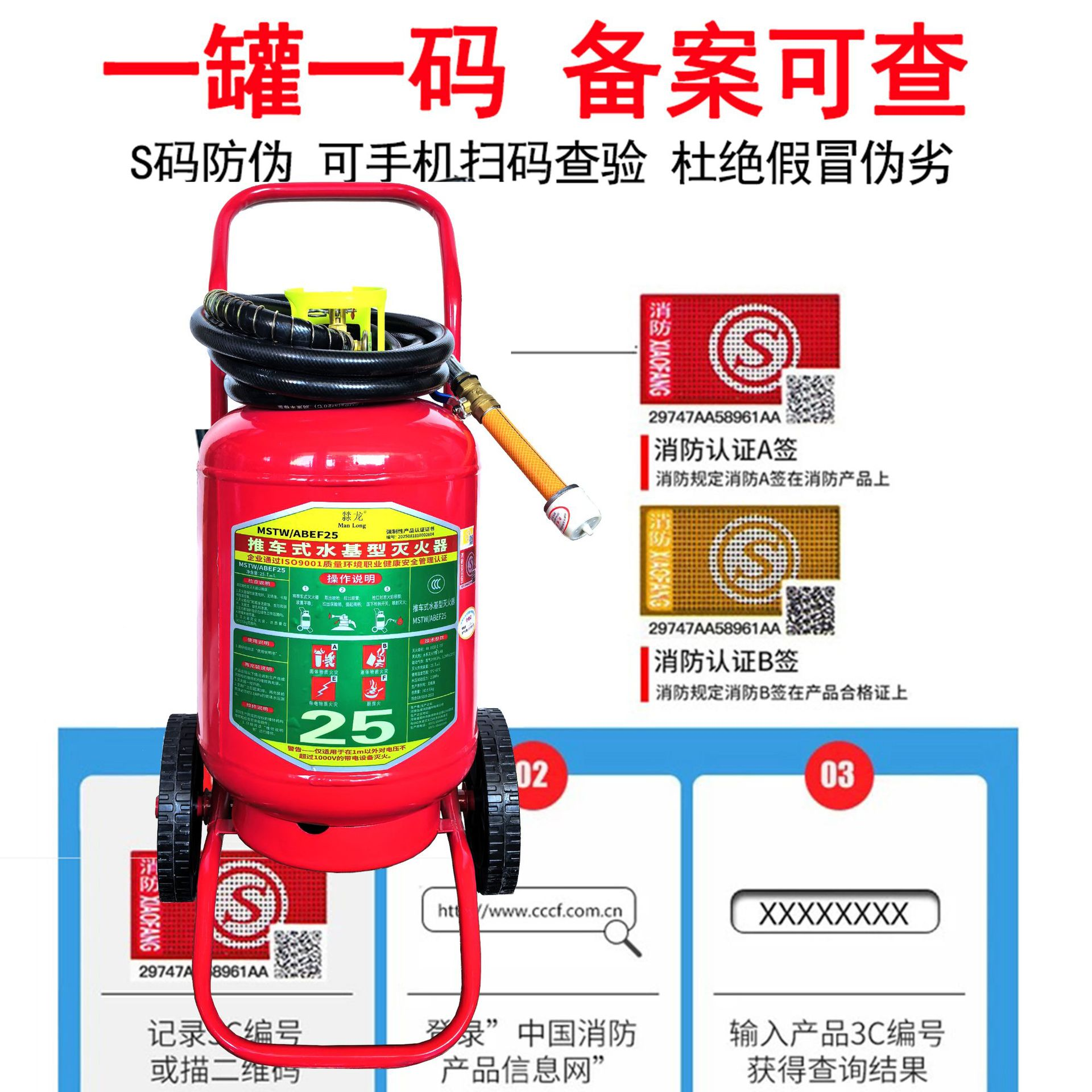 新国标水基灭火器推车式25升45升MSTW/ABEF25加油站充电桩用消防